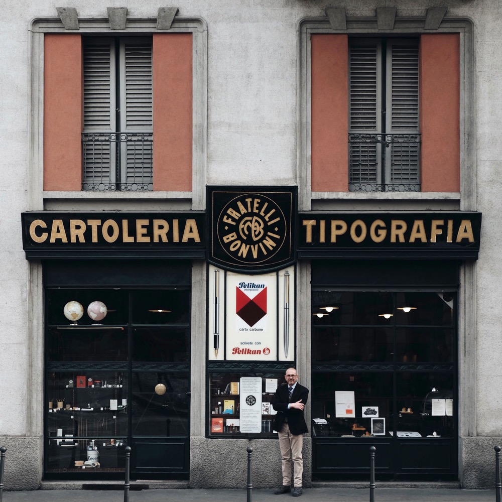 Το 1909, ο Κονστάντε Μπονβίνι άνοιξε το κατάστημά του με χαρτικά και γραφική ύλη. Με την πρώτη τυπογραφική μηχανή του, μία Pedalina, άρχισε να τυπώνει μπίζνες καρντς, προσκλήσεις και χαρτιά αλληλογραφίας. Η επιχείρηση πέρασε στα χέρια της κόρης του, Λέιλα και του συζύγου της, Λουίτζι Καμπιέρι. Το 2012, έπρεπε να το πουλήσει, σκέφτηκε και να το κλείσει, αλλά μια ομάδα ενθουσιωδών φίλων ανέλαβε. Ο σημερινός μάνατζερ, Εντοάρντο Φόντι, υπογραμμίζει ότι η παλιά επίπλωση ανανεώθηκε για να είναι και πάλι λειτουργική. Ακόμη και η επιγραφή του 1909.